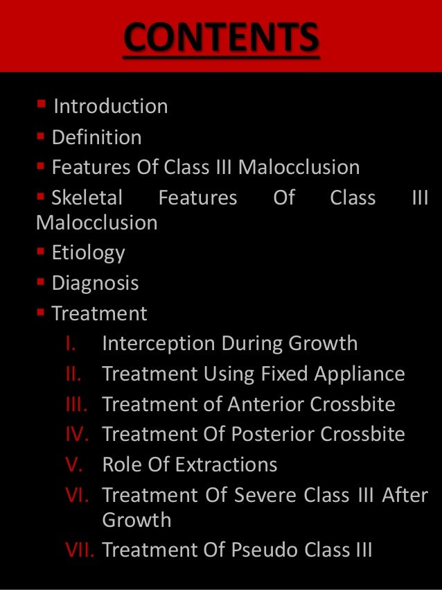 Sometimes a Class III relationship is caused by a forward shift of the mandible to avoid incisal interferences. Malocclusion into 2 namely extrinsic and intrinsic. It is very difficult to diagnose and treat Class III malocclusion.